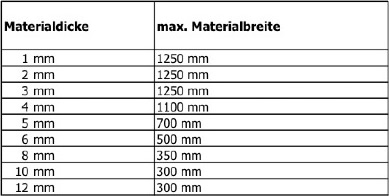 Die max. Teilebreite beträgt 1250 mm und ist abhängig von der Materialdicke.